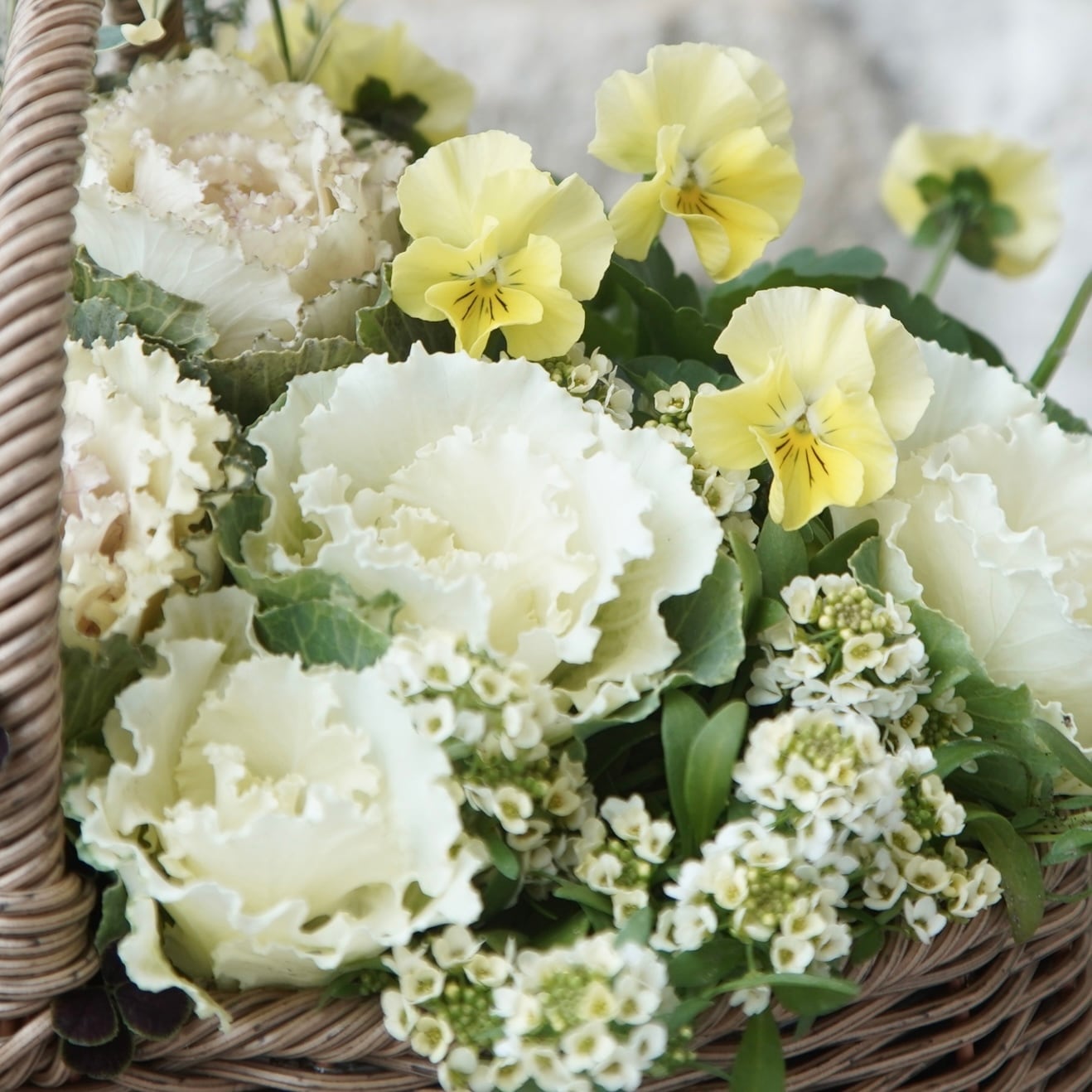 「パンジー ミニフリフリとハボタン」の寄せ植え