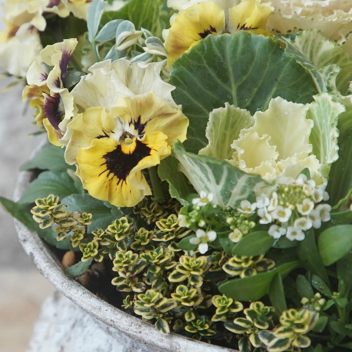「パルムディレーヌとハボタン」の寄せ植え